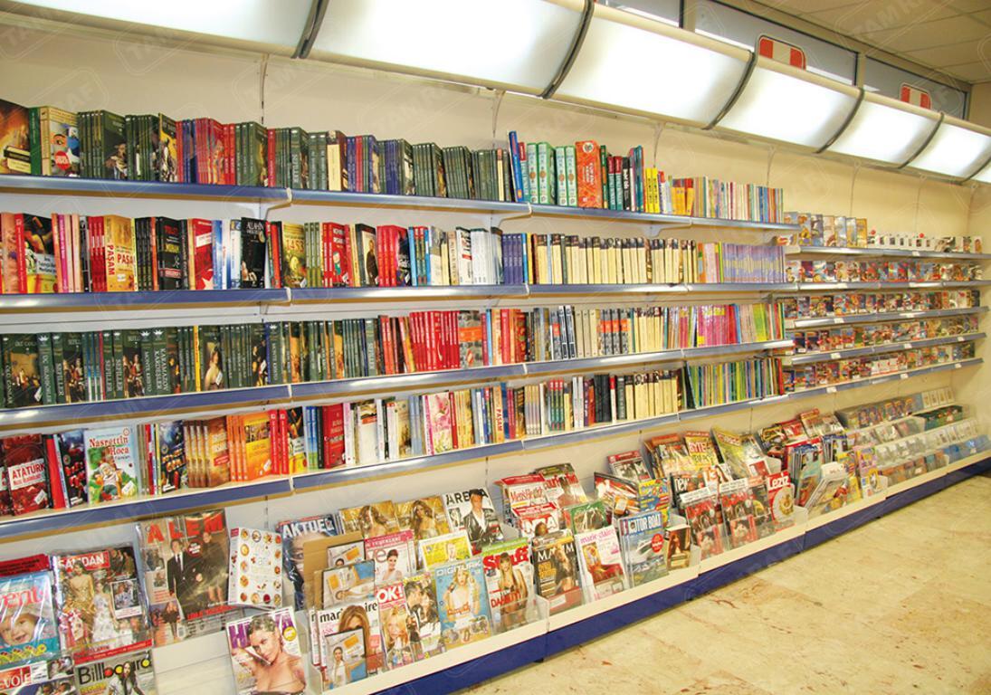 - رفوف محلات القرطاسية و الكتب و المكتبات