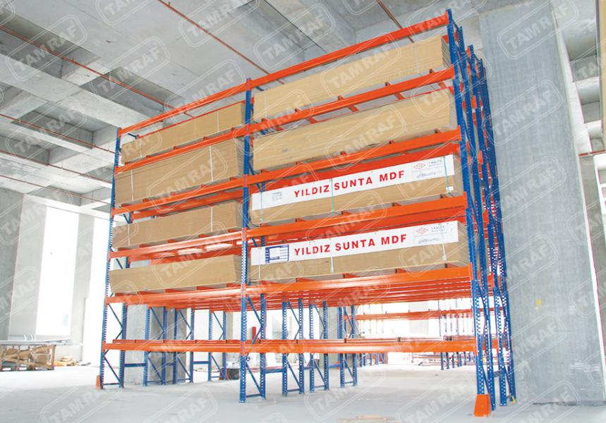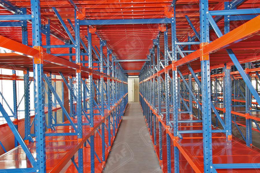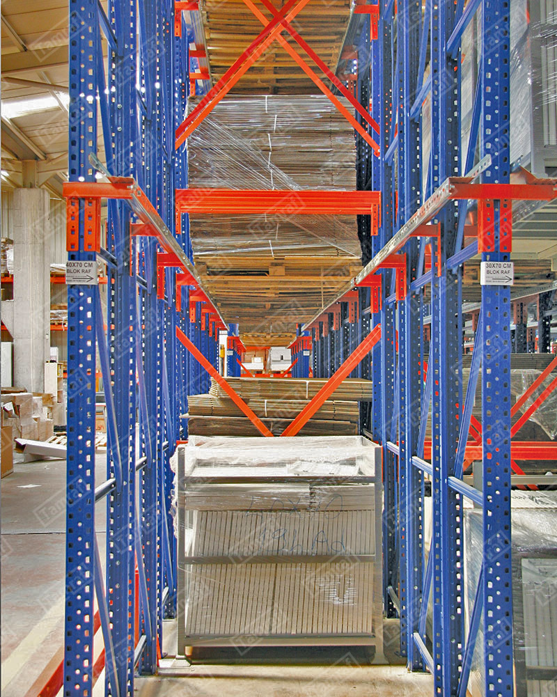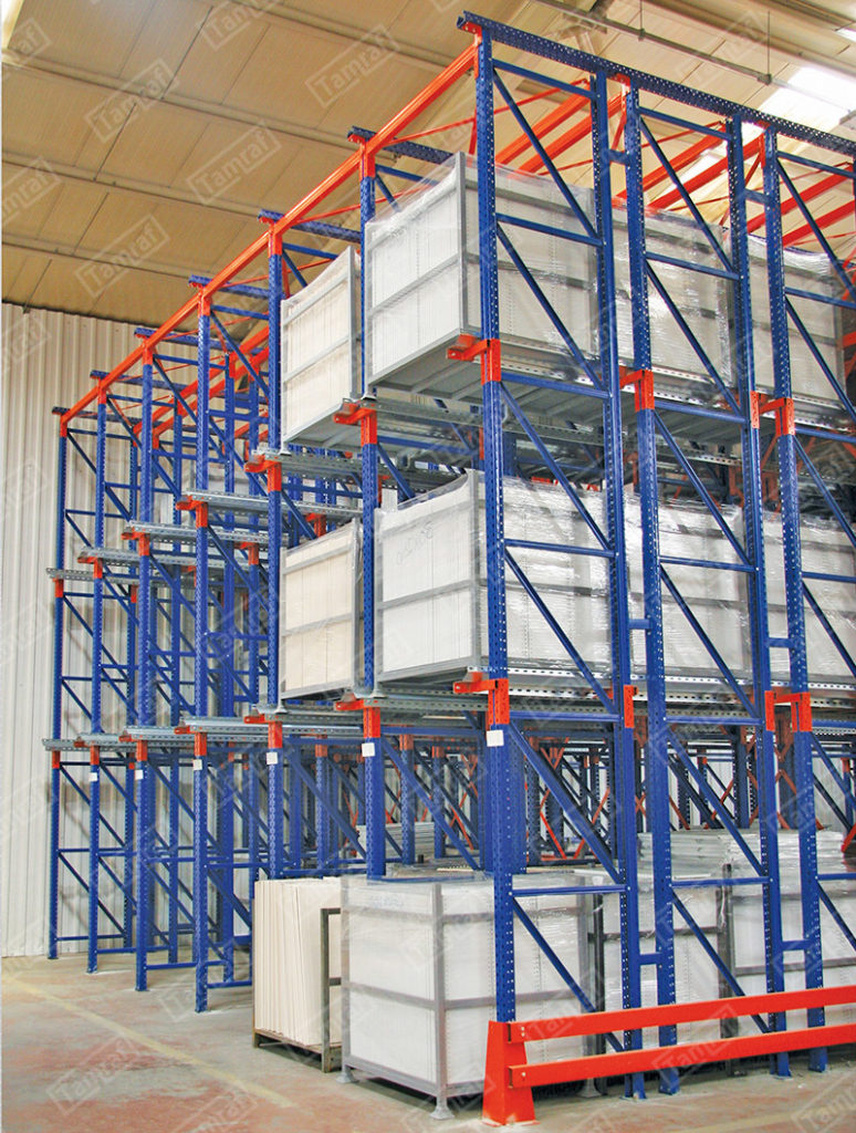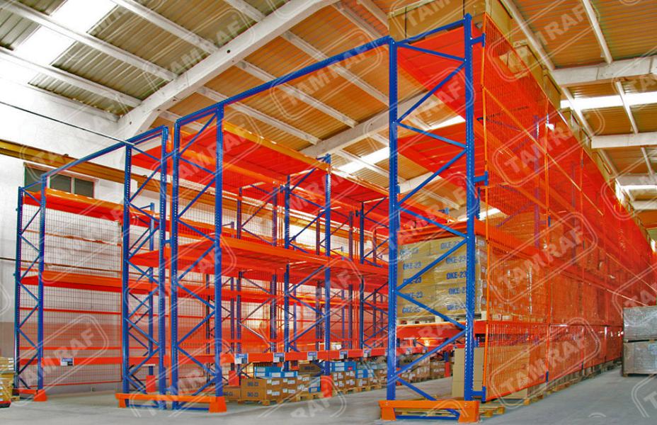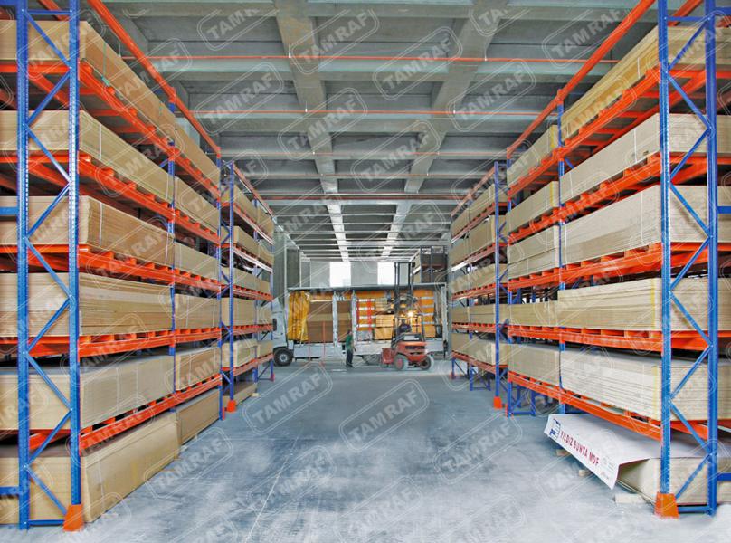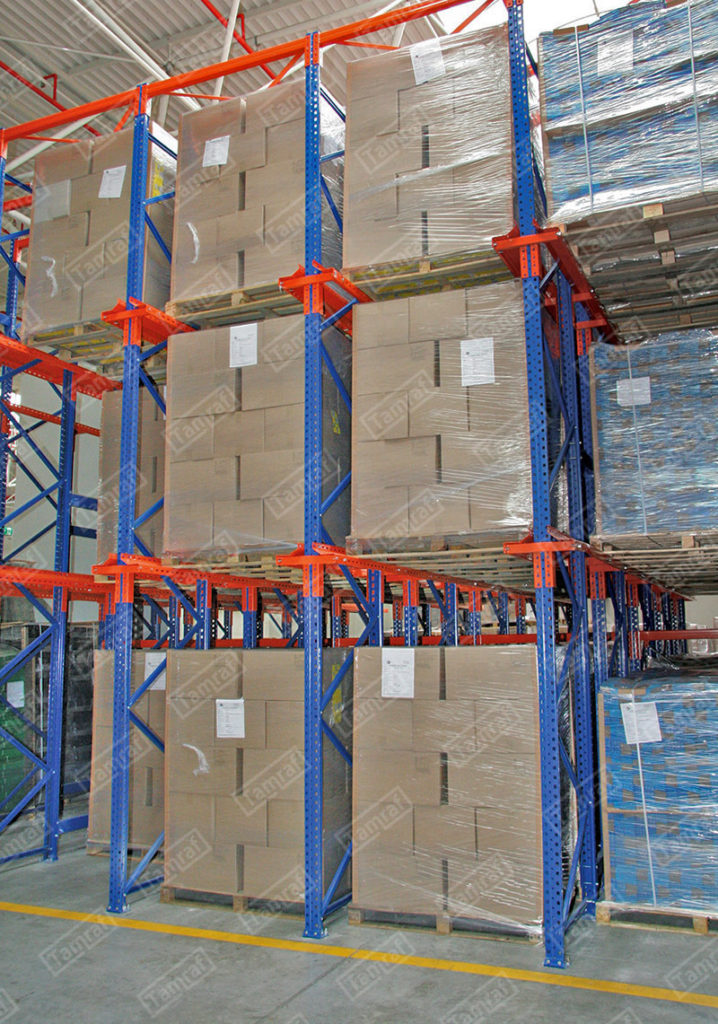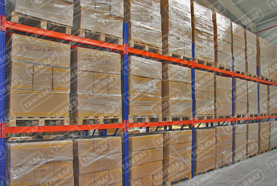 أنظمة رفوف الطبليات - رفوف الأحمال الثقيلة : إن ما نطلق عليه نظام Drive-In Shelf هو أحد أنظمة الأرفف الأكثر إفادة ،والتي تمكن من الاستفادة القصوى من مساحة التخزين والحجم ، تتمثل الميزة الأكبر لنظام رف Drive-In في أنه يوفر مساحة كفاءة تصل إلى 85٪ للتخزين أعلى. يعطي المساحة الأعظم لساحة العمل والاستخدام ويقتصد في المساحات لادنى مساحة ممكنة بالنسبة للمرات بين الرفوف (الكوريدور) كما يمكن من خلال نظام التخزين هذا رصد ومتابعة حركة دخول وخروج البضائع بكل سهولة قنوات التحميل تسمح بتخزين المنتجات المختلفة يمتاز هذا النوع من أنظمة الأرفف ( أنظمة رفوف الطبليات ) ، انه يمكن الوصول إلى البضائع (إدخالها واخراجها من اتجاه واحد) ، كما يكمن بالطبع وفقا لطلب العميل اعداد القنوات اللتي تحمل طبليات البضائع للاستخدام من كلا الجهيتين تحميلاً وإفراغاً نظام الرف هذا ،والذي يمكن الوصول إليه من كلا الاتجاهين drive through او نظام التخزين من داخل الرفوف إضافة مثل هذا النوع لانظمة التخزين يعتبر من اكبر التطورات اغناءا ًلعالم رف التخزين الحل الأمثل لتخزين المنتجات اللتي تحتاج DRIVE-IN يوفر نوع رفوف المستودعات مراقبة دائمة لدرجة حرارتها كالتي تحتاج درجات حرارة منخفضى جدا واللتي تحتاج درجات حرارة عالية جدا لسهولة النقل والتحريك بين البضائع المختلفة